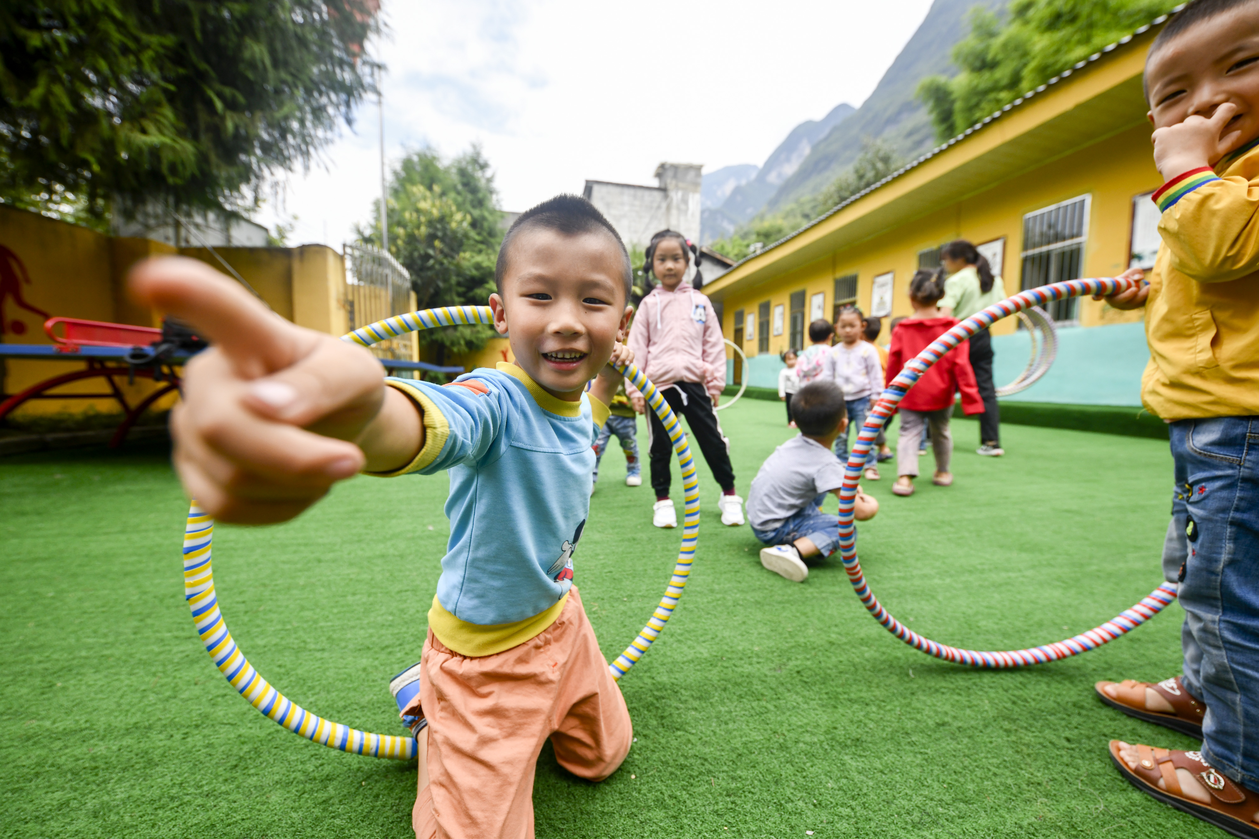 Students of nursery class play at Lianhua Primary School of Luzi Village, Chengkou County, SW China's Chongqing Municipality. (Xinhua/Liu Chan)