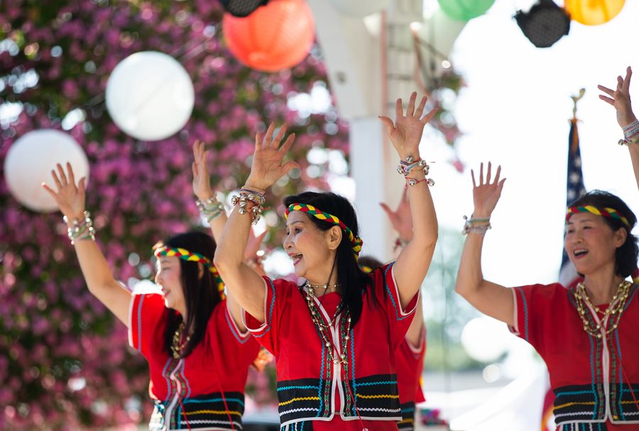 Performers dance to celebrate the Chinese Mid-Autumn Festival in Los Angeles, the United States, Sept. 7, 2019. (Xinhua/Qian Weizhong)