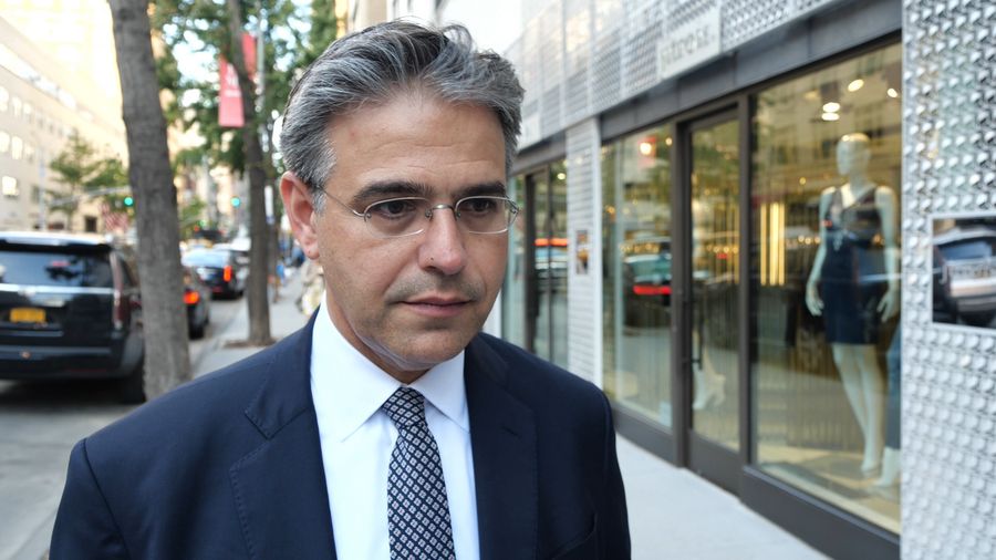 Matthew Bauer, president of the Madison Avenue business improvement district, talks to Xinhua correspondents on Madison Avenue in New York City, the United States, Sept. 13, 2019. (Xinhua/Guo Peiran)