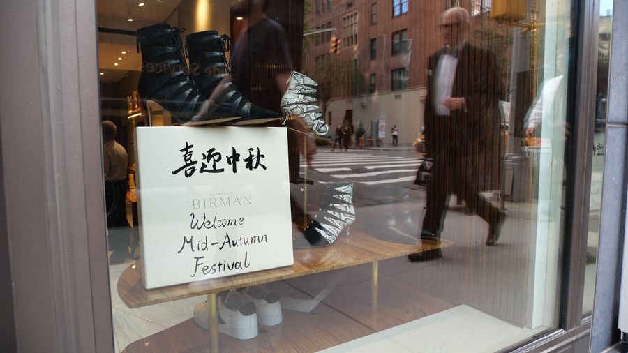 NEW YORK, Sept. 14 (Xinhua) -- If you happen to shop on Madison Avenue in the Upper East Side of Manhattan this weekend, you may expect personalized calligraphy on shoes at Alexandre Birman, Chinese brush painting at Jimmy Choo and a taste of mooncakes at Bally.