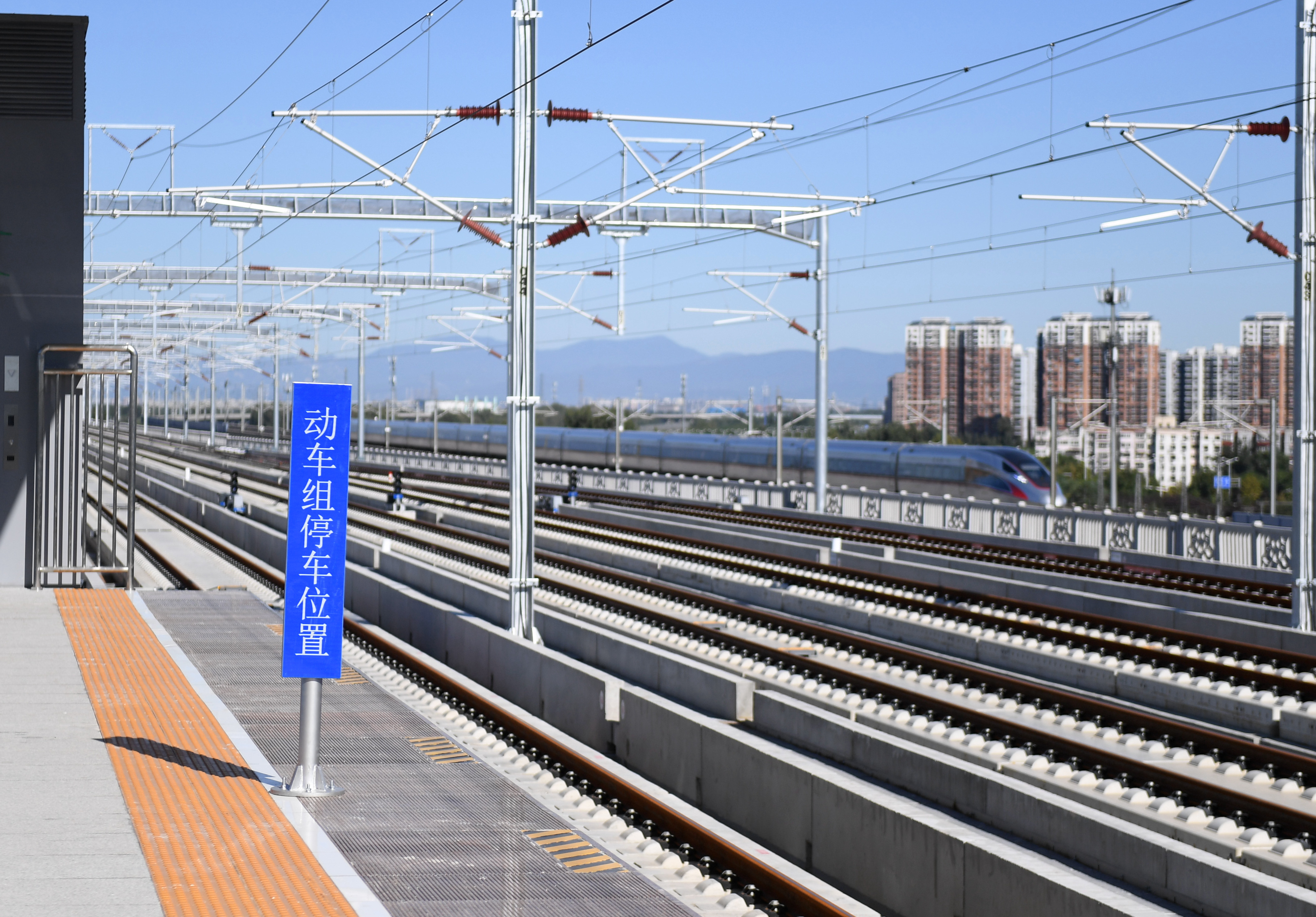 The platform of Daxing station on the intercity railway linking Beijing with Xiongan New Area in Beijing, capital of China, Sept. 18, 2019. (Xinhua/Zhang Chenlin)