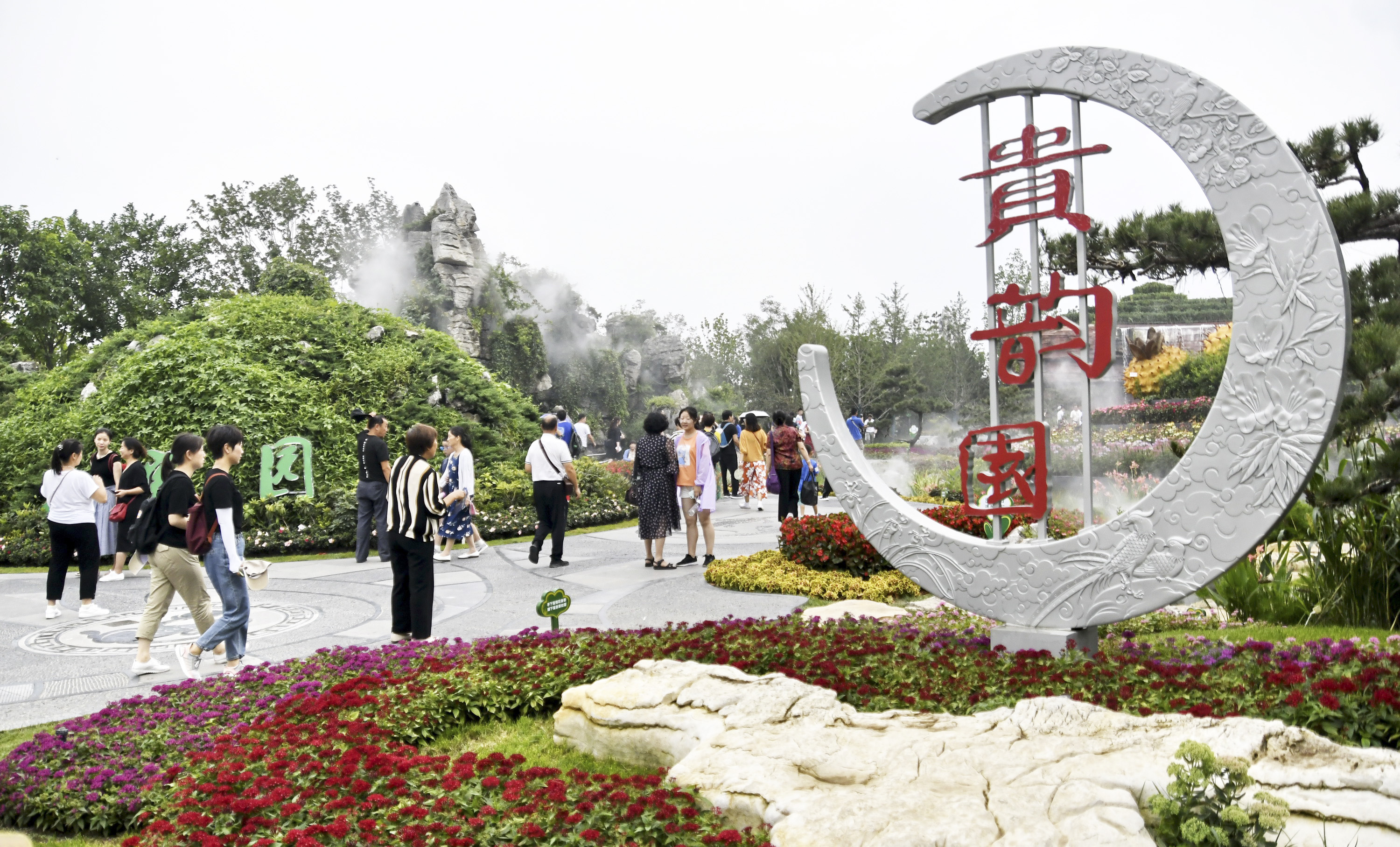 Tourists visit the Guizhou Garden at the Beijing International Horticultural Exhibition in Beijing, capital of China, Aug. 4, 2019. (Xinhua/Li Xin)