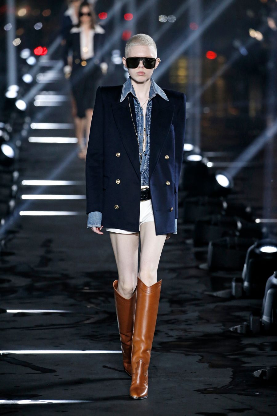 A model presents a creation of Saint Laurent at its Spring/Summer 2020 women's ready-to-wear collection show during Paris Fashion Week in Paris, France, Sept. 24, 2019. (Photo by Piero Biasion/Xinhua)