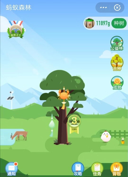 Since 2016, users of Alipay Ant Forest, a public welfare platform, have been planting an average of 110,000 trees in arid areas every single day by playing a mobile game embedded in the Alipay app.