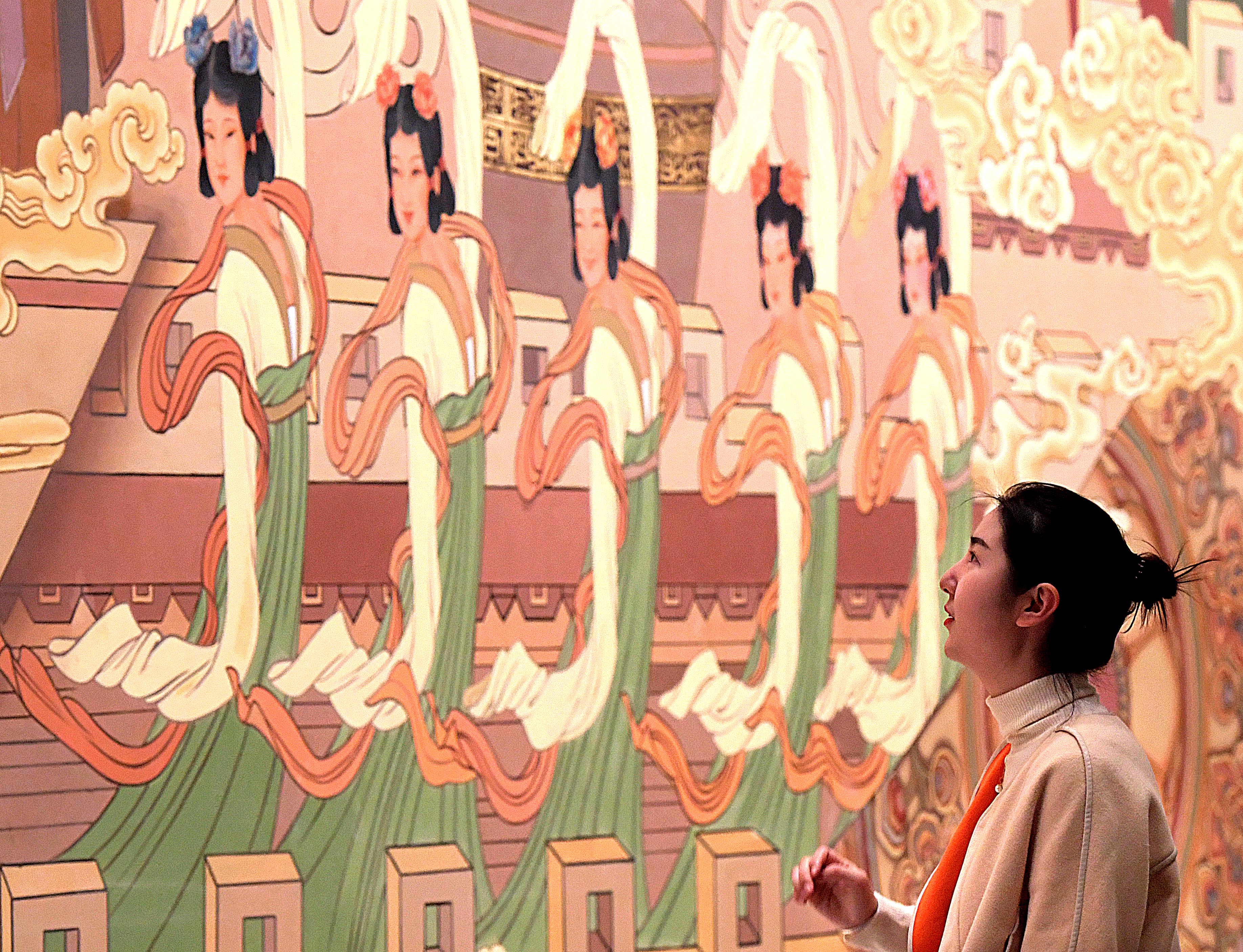 A woman visits the Yingtianmen site museum of the National Archaeological Site Park of Sui-Tang Luoyang City in Luoyang City, central China's Henan Province. Oct. 15, 2019. In recent days, the Yingtianmen site museum of the park opened to the public. The Yingtianmen gate was built in Sui Dynasty (581-618). (Xinhua/Li An)