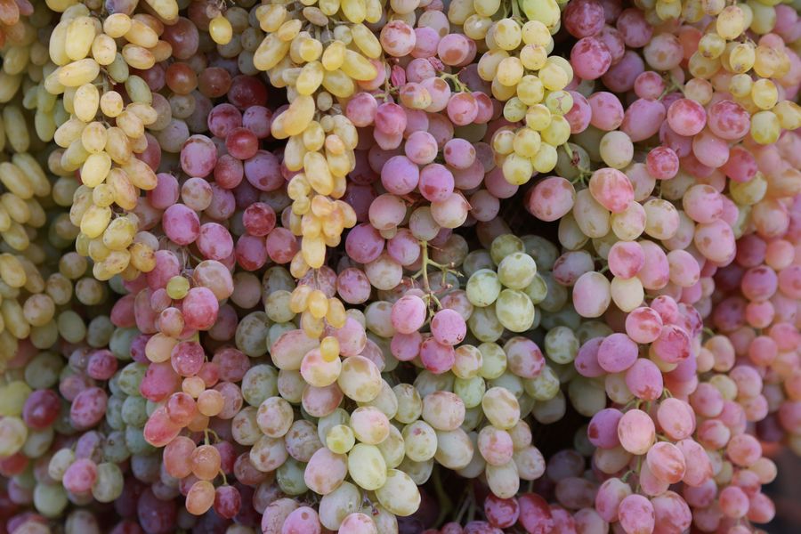 Freshly-picked grapes are displayed in the kiosk at the Agricultural Fair in Kabul, capital of Afghanistan, Oct. 16, 2019. (Xinhua/Rahmatullah Alizadah)
