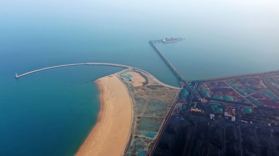 Aerial photo taken on Oct. 23, 2019 shows a view of Shijiu Port Area of Rizhao Port in Rizhao City, east China's Shandong Province, Oct. 23, 2019. (Xinhua/Wang Kai)