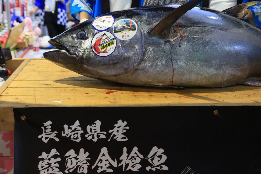 Visitors can have a slice of the 70kg bluefin tuna from Japan.