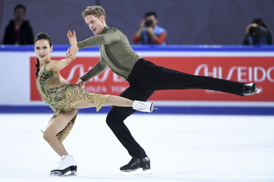 Madison Chock/Evan Bates (R) of the United States perform during the Ice Dance Free Dance at the ISU Grand Prix of Figure Skating Cup of China 2019 in Chongqing, southwest China, Nov. 9, 2019.
