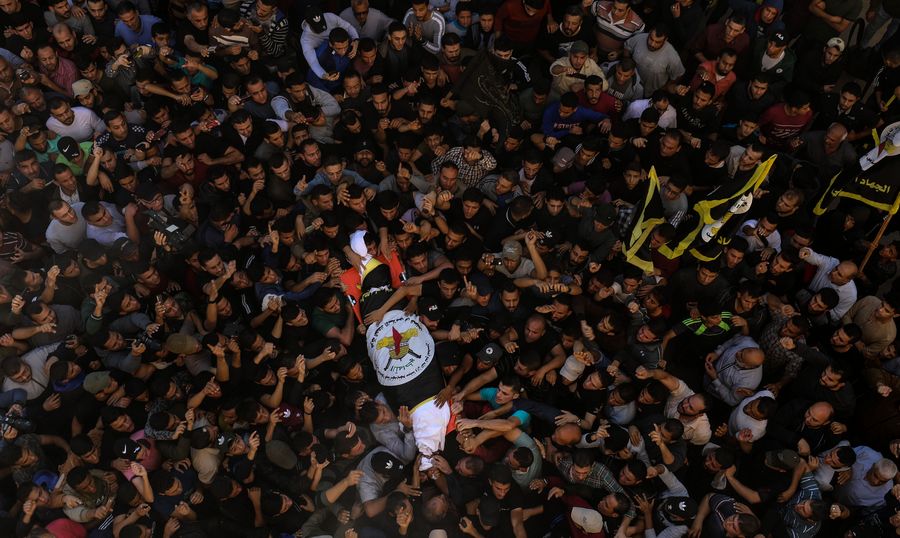 Mourners carry the body of Palestinian Islamic Jihad leader Baha Abu al-Atta during his funeral in Gaza City, Nov.12, 2019. (Xinhua/Yasser Qudih)