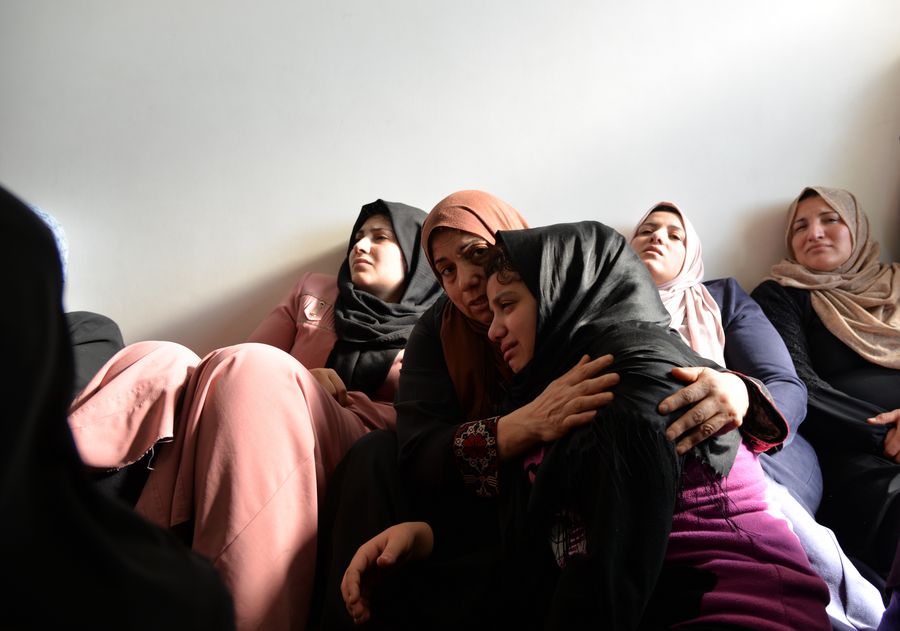 Relatives of Palestinian Islamic Jihad leader Baha Abu al-Atta mourn during his funeral in Gaza City, Nov.12, 2019. (Xinhua/Rizek Abdeljawad)
