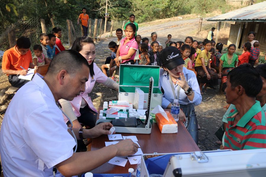 The PowerChina Sinohydro Bureau 3 Co., LTD, a Chinese engineering company building the fourth section of the China-Laos railway in northern Laos' Luang Prabang province, offers charity clinics to local villagers on Jan. 11, 2019. (Sinohydro Bureau 3/Handout via Xinhua)