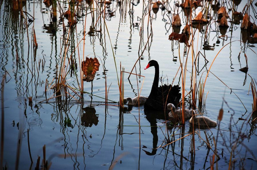 Photo taken on Nov. 18, 2019 shows swans at the Jixi national wetland, located in western Jinan, east China's Shandong Province.(Xinhua/Wang Kai)■
