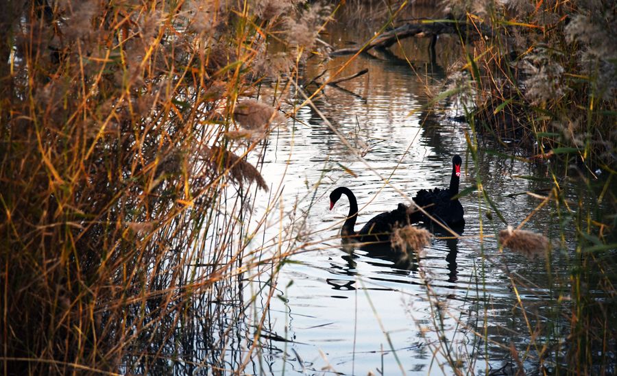 Photo taken on Nov. 18, 2019 shows a swan at the Jixi national wetland, located in western Jinan, east China's Shandong Province.(Xinhua/Wang Kai)