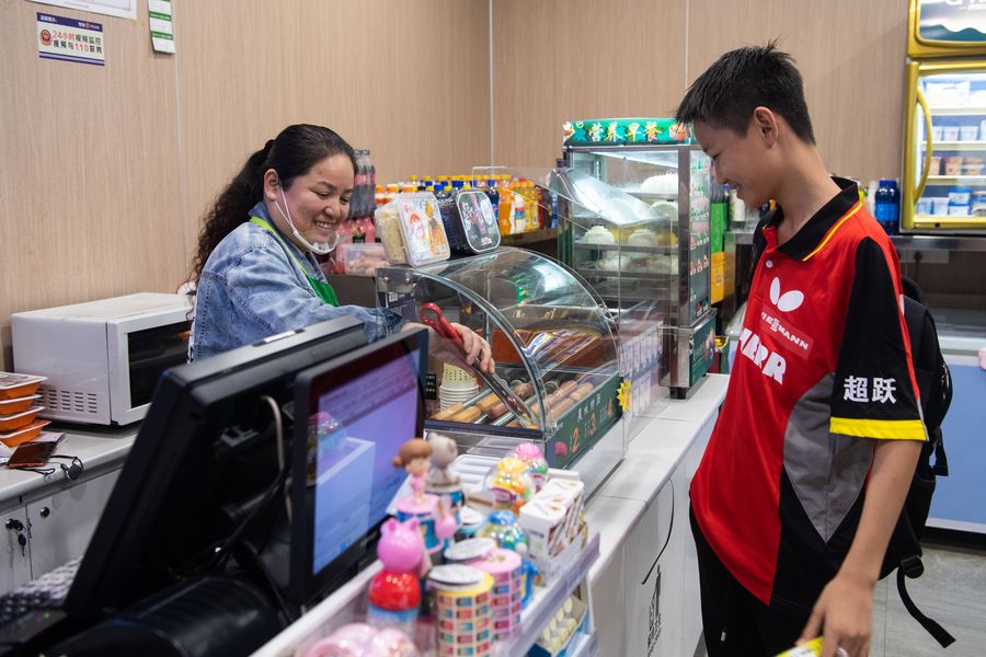 A student buys snacks at a Jianning station in city of Zhuzhou, central China's Hunan Province, Nov. 17, 2019. (Xinhua/Chen Sihan)