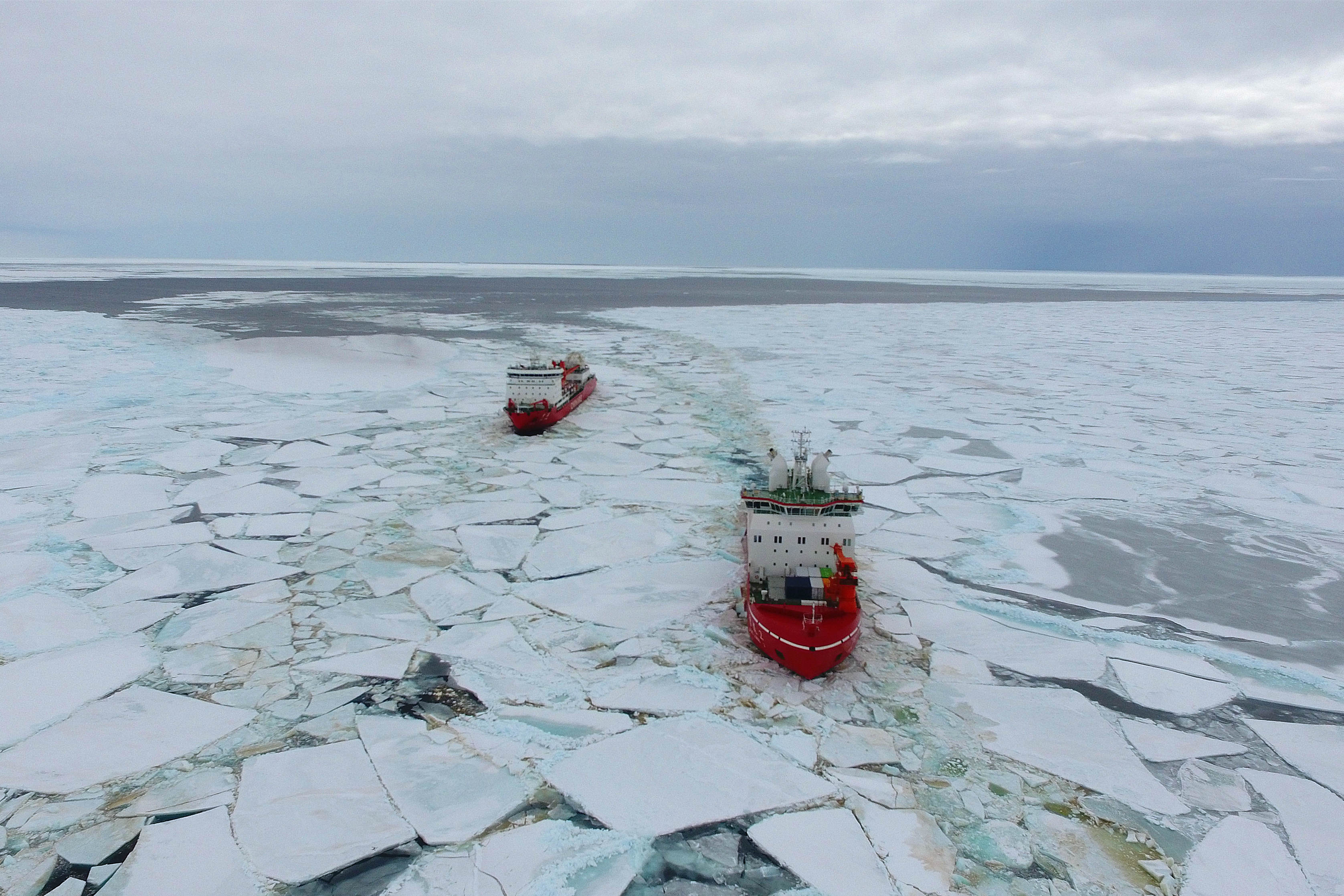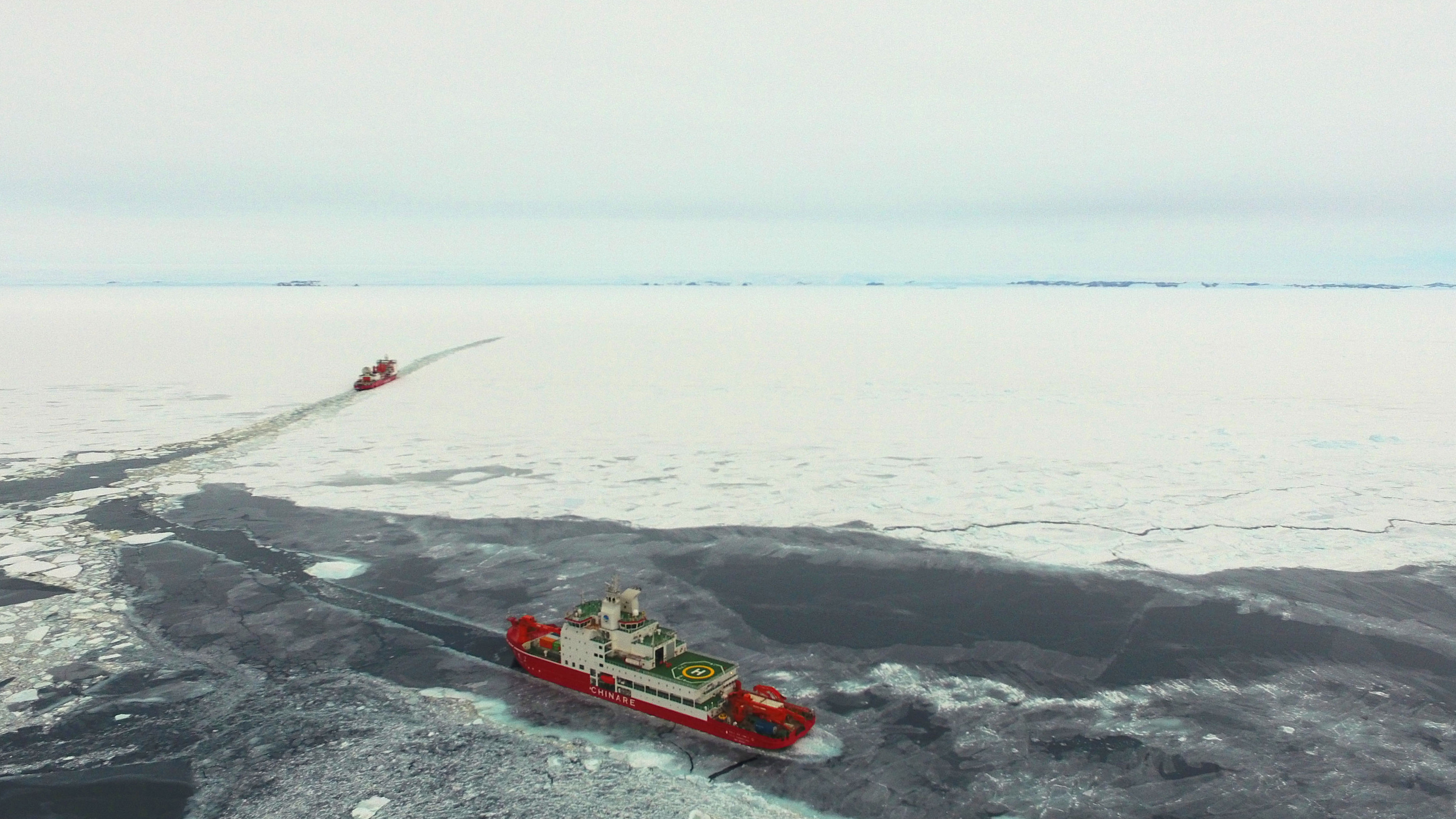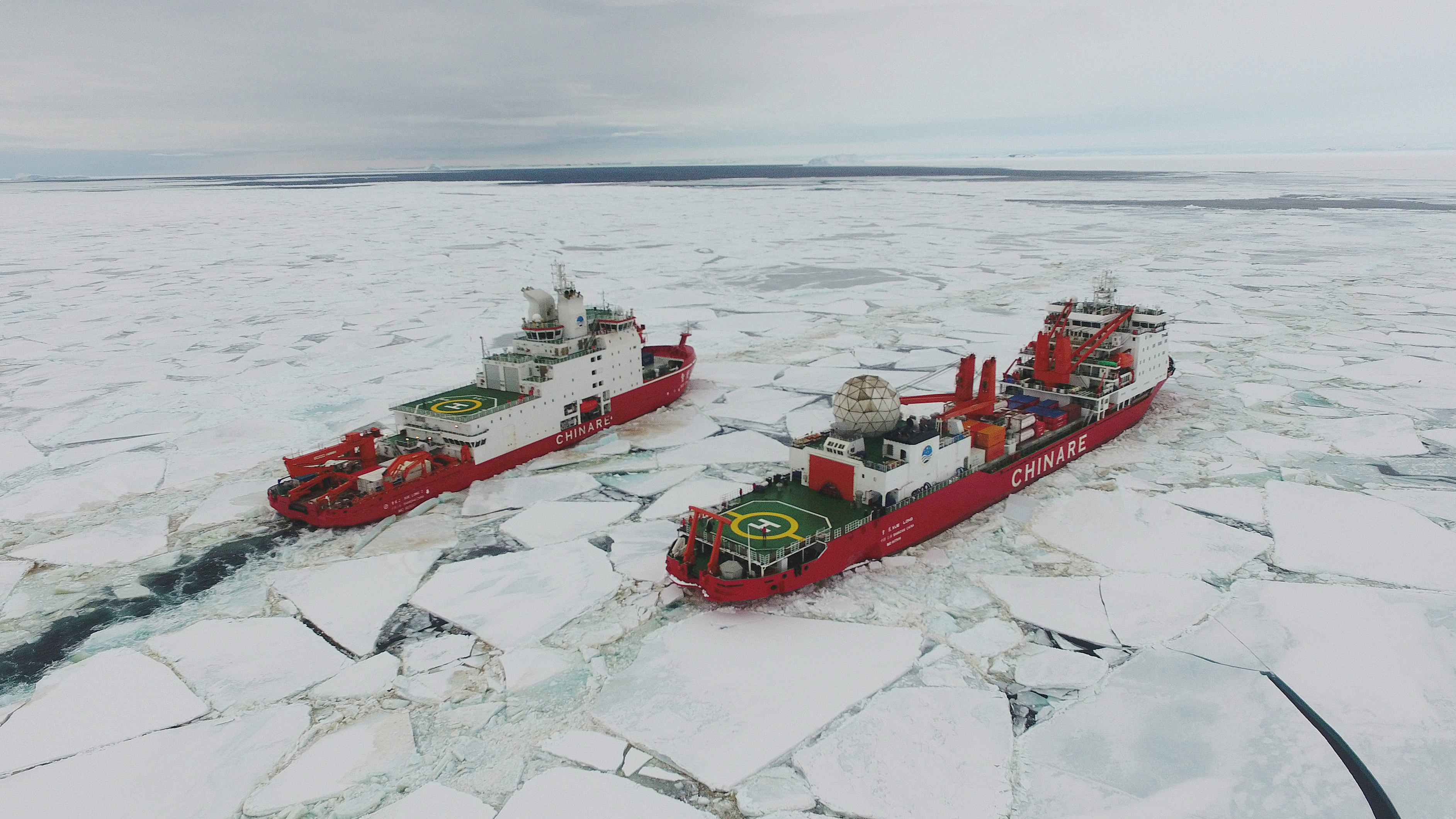 Icebreaker Xuelong also joined the expedition, making it the first time that two polar icebreakers work together on China's Antarctic expedition.