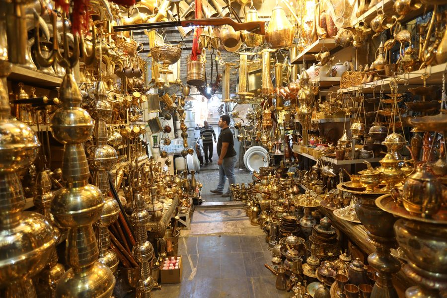 Amir Ali, 42, who inherited the skill of making copper artifacts from his father, told Xinhua that the market once housed some 194 shops and workshops, but only a few shops remain as many craftsmen have abandoned their ancestors' profession amid a recession of this trade.