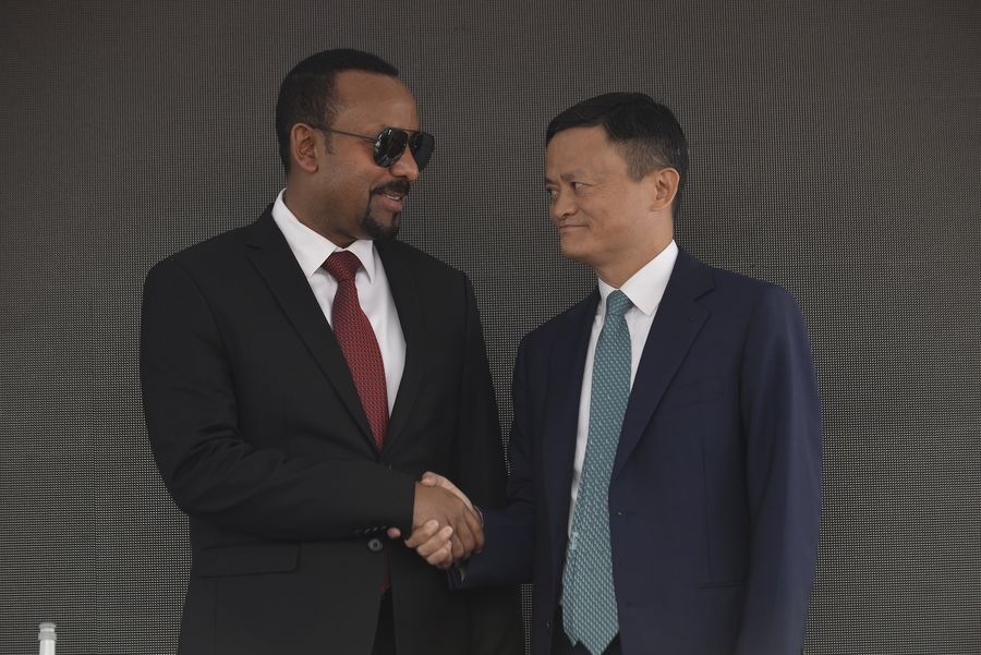 Ethiopian Prime Minister Abiy Ahmed (L) shakes hands with Alibaba Group Founder Jack Ma (R) in Addis Ababa, capital of Ethiopia, Nov. 25, 2019. (Xinhua/Michael Tewelde)
