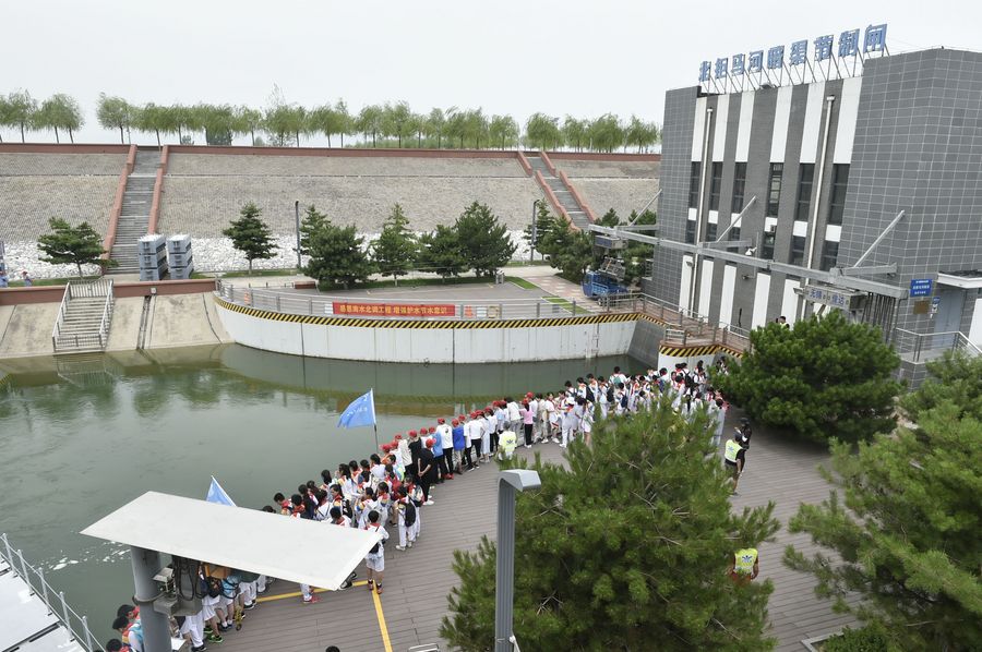 Students visit a part of the middle route of the south-to-north water diversion project in Fangshan District of Beijing, capital of China, July 9, 2019. (Xinhua/Lu Peng)