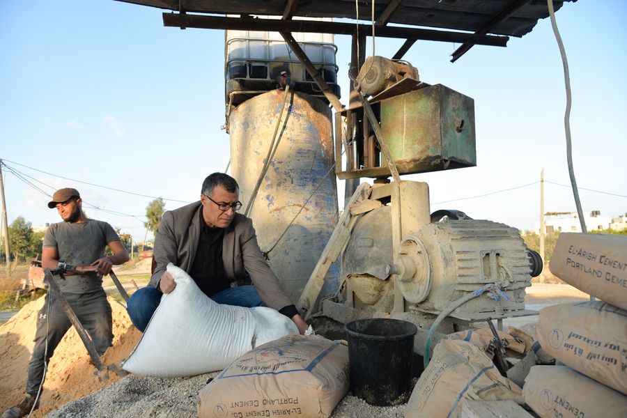 Palestinian engineer Husam al-Aqraa seen at a small stone factory where he performs his project, in Jabalia refugee camp in northern Gaza Strip, Dec. 17, 2019. (Xinhua/Rizek Abdeljawad)