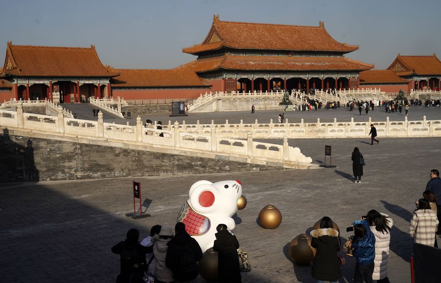 Photo taken on Dec. 27, 2019 shows a statue featuring auspicious rat in the Palace Museum, or Forbidden City, in Beijing, capital of China. (Xinhua/Jin Liangkuai)