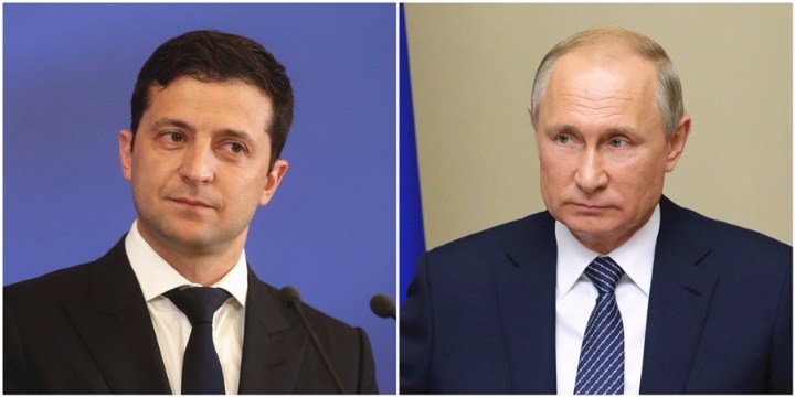 Xinhua file photos of Russian President Vladimir Putin (R) and Ukrainian President Volodymyr Zelensky