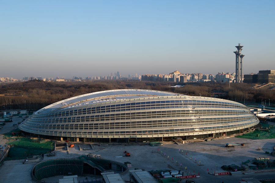 BEIJING, Jan. 1 (Xinhua) -- The National Speed Skating Oval, which will host speed skating competitions during the Beijing 2022 Olympic and Paralympic Winter Games, has seen its main structure construction completed on Tuesday, according to constructors.