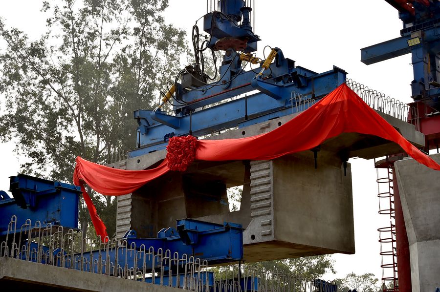 The Chinese engineers successfully installed the first box girder of Bangladesh's longest elevated railway. The 17-km railway is a part of 169-km-long China-financed Padma Bridge Rail Link Project that will provide the first direct rail link between southwest Bangladesh with central area.