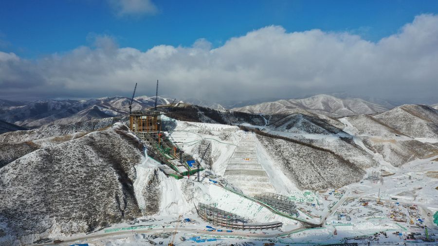 An aerial photo taken with a drone on Dec. 10, 2019 shows the venue for ski jumping competition at the 2022 Beijing Winter Olympic Games in Chongli, north China's Hebei Province. Chongli, a district of Zhangjiakou in Hebei Province which is 200 kilometers northwest of Chinese capital Beijing, has become a popular skiing destination as it will host most of the skiing events at the 2022 Winter Olympic Games. (Xinhua/Yang Shiyao)