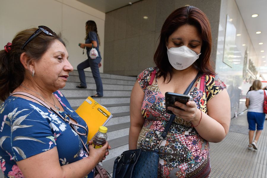 A woman wearing a mask watches her cellphone in Santiago, Chile, March 5, 2020. Chilean Health Ministry announced the country's fourth case, a 40-year-old patient who returned from Italy on Sunday and developed symptoms of the virus on Wednesday. (Photo by Jorge Villegas/Xinhua)