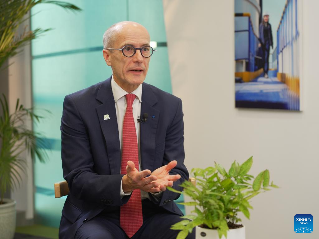 Xavier Girre, CEO of environmental firm SUEZ, speaks during an interview with Xinhua in Beijing, capital of China, Dec. 4, 2025.(Xinhua/Guo Peiran)