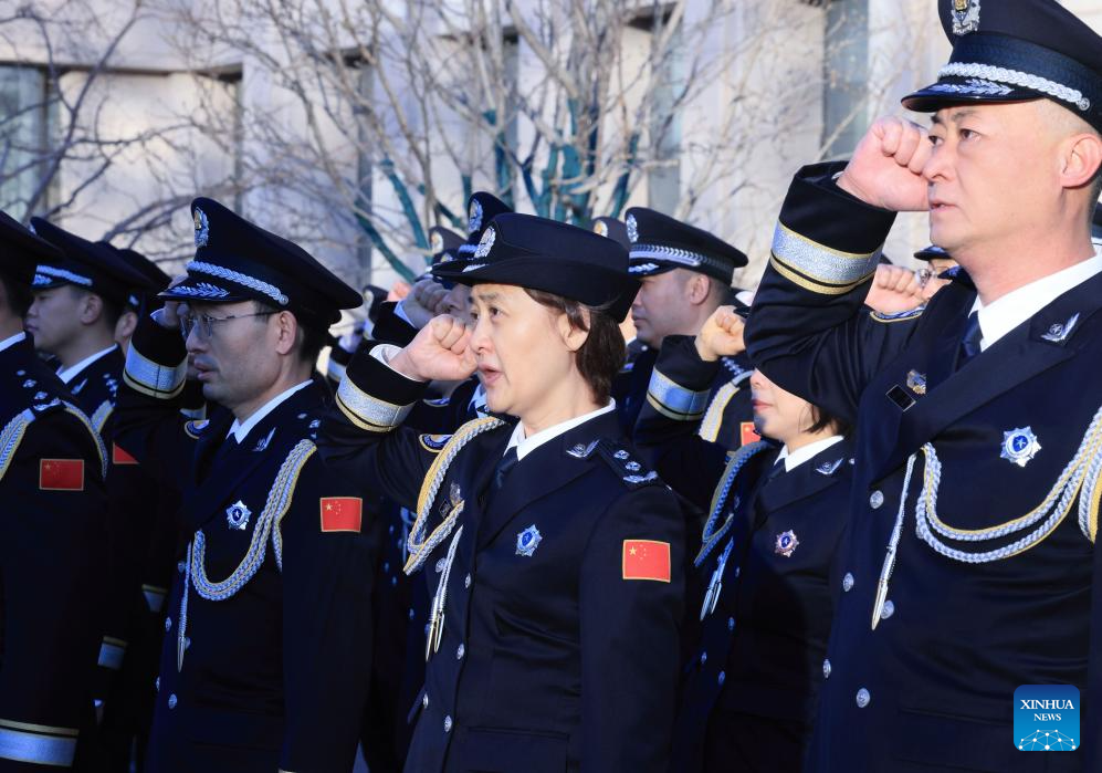 A flag-raising ceremony is held at the Ministry of Public Security to mark the sixth Chinese People's Police Day in Beijing, capital of China, on Jan. 10, 2026. (Xinhua/Yin Gang)