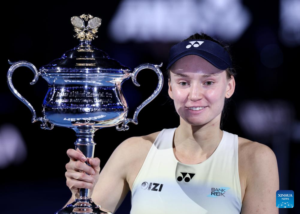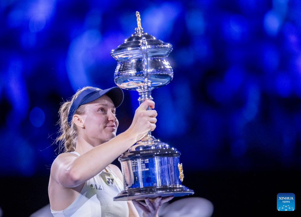 MELBOURNE, Jan. 31 (Xinhua) -- World No. 5 Elena Rybakina outdueled top seed Aryna Sabalenka with astonishing power hitting to win her first Australian Open title in an engrossing three-set final on Saturday.