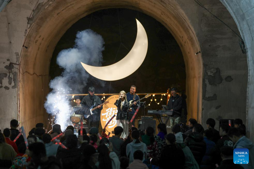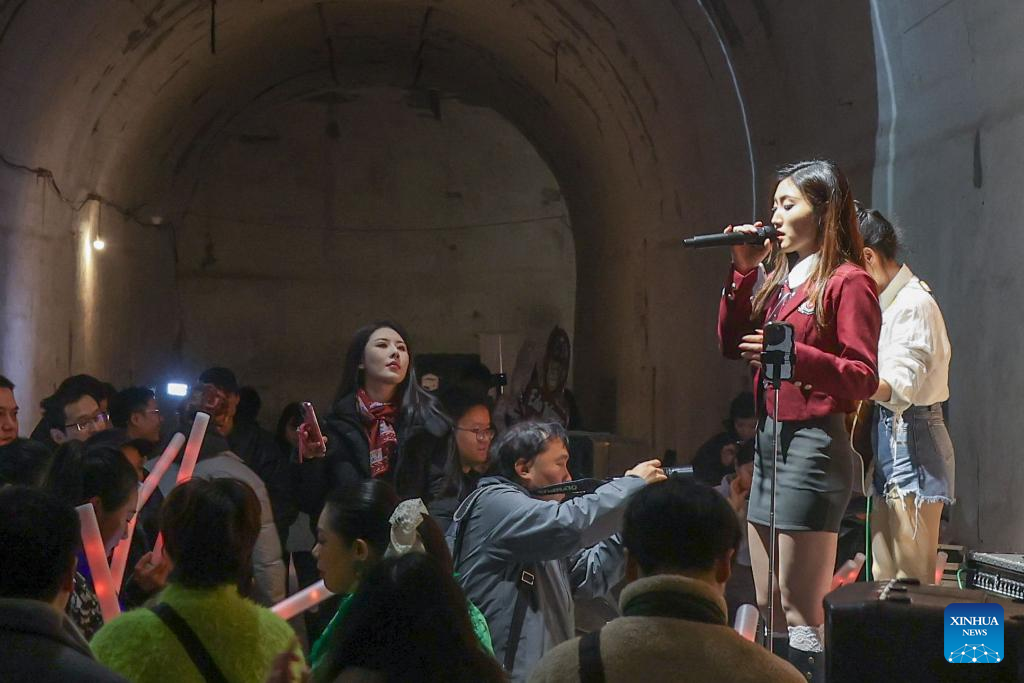 A band performs during a live show held in an underground air-raid shelter in southwest China's Chongqing Municipality, Jan. 31, 2026. (Xinhua/Chen Cheng)