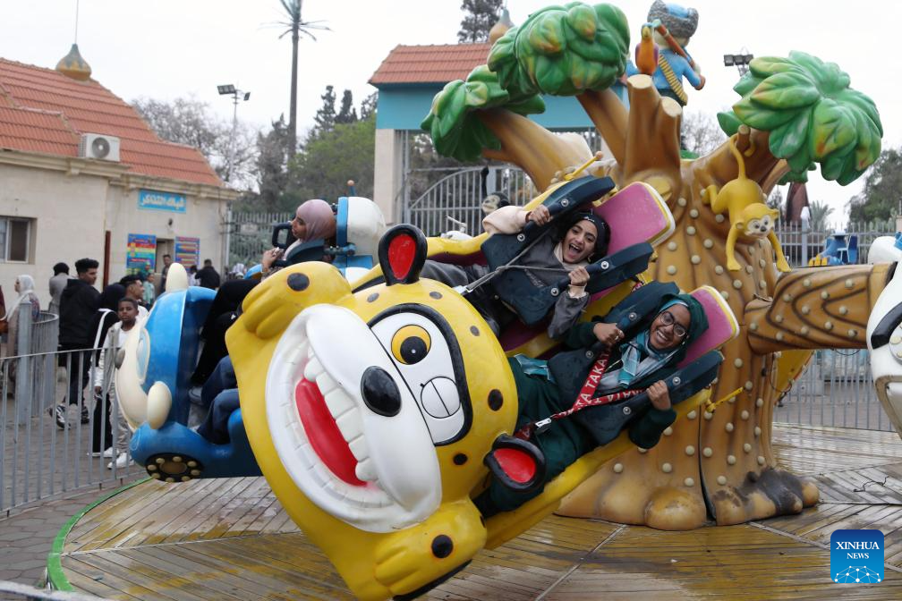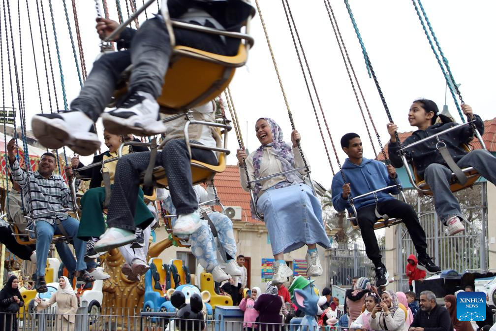 People have fun at an amusement park during the Eid al-Fitr holiday in Cairo, Egypt, March 21, 2026. (Xinhua/Ahmed Gomaa)