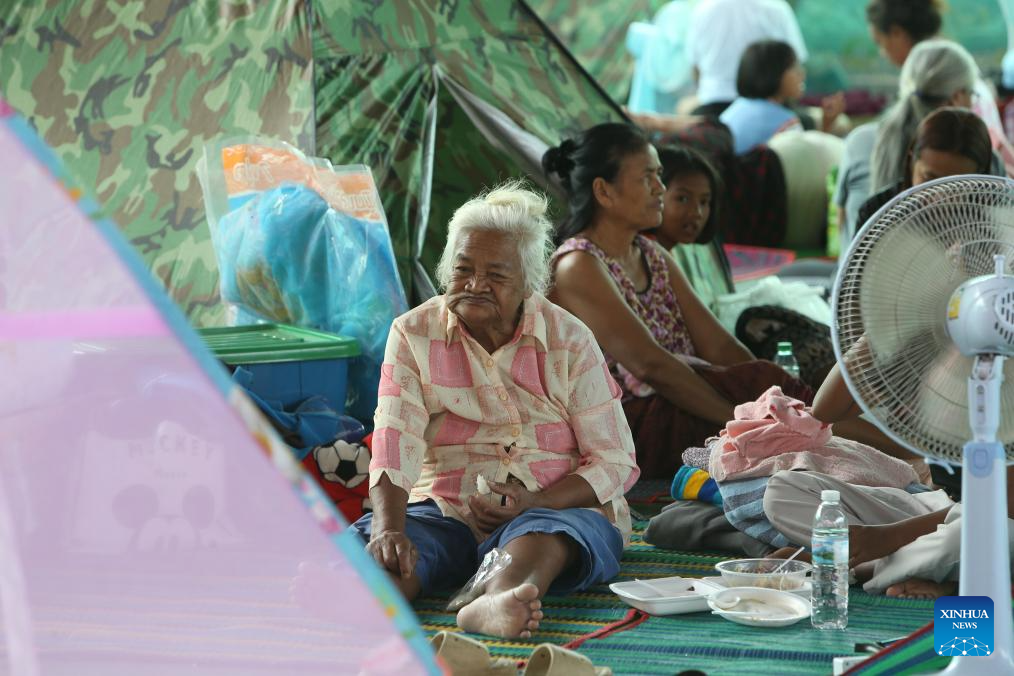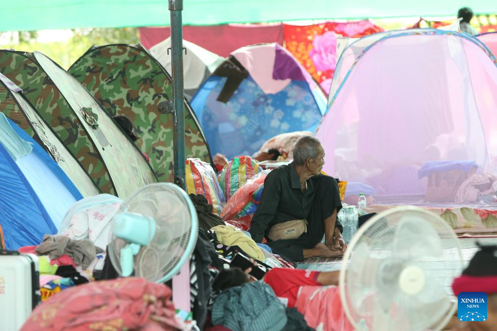 People gather in an evacuation center in Sa Kaew province, Thailand on Dec. 10, 2025. According to Thai media, fresh border clashes between Thailand and Cambodia have forced over 800 schools and many hospitals to temporarily close in Thailand's border provinces.