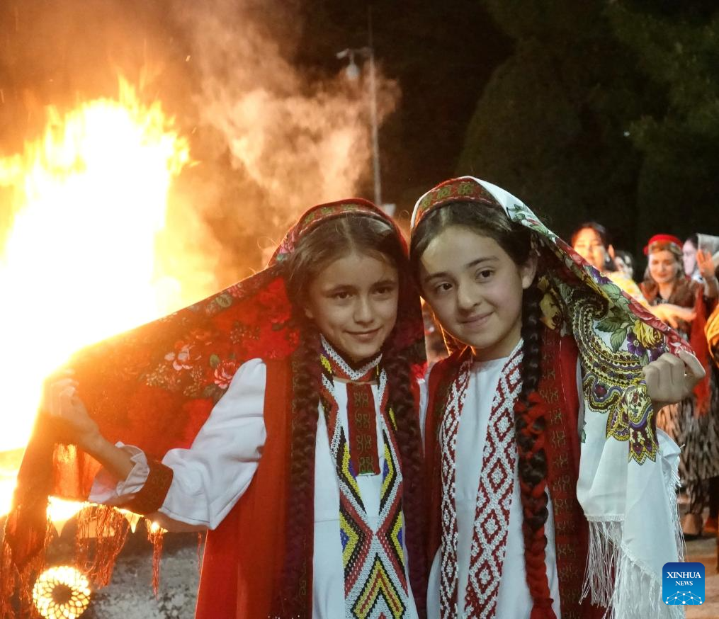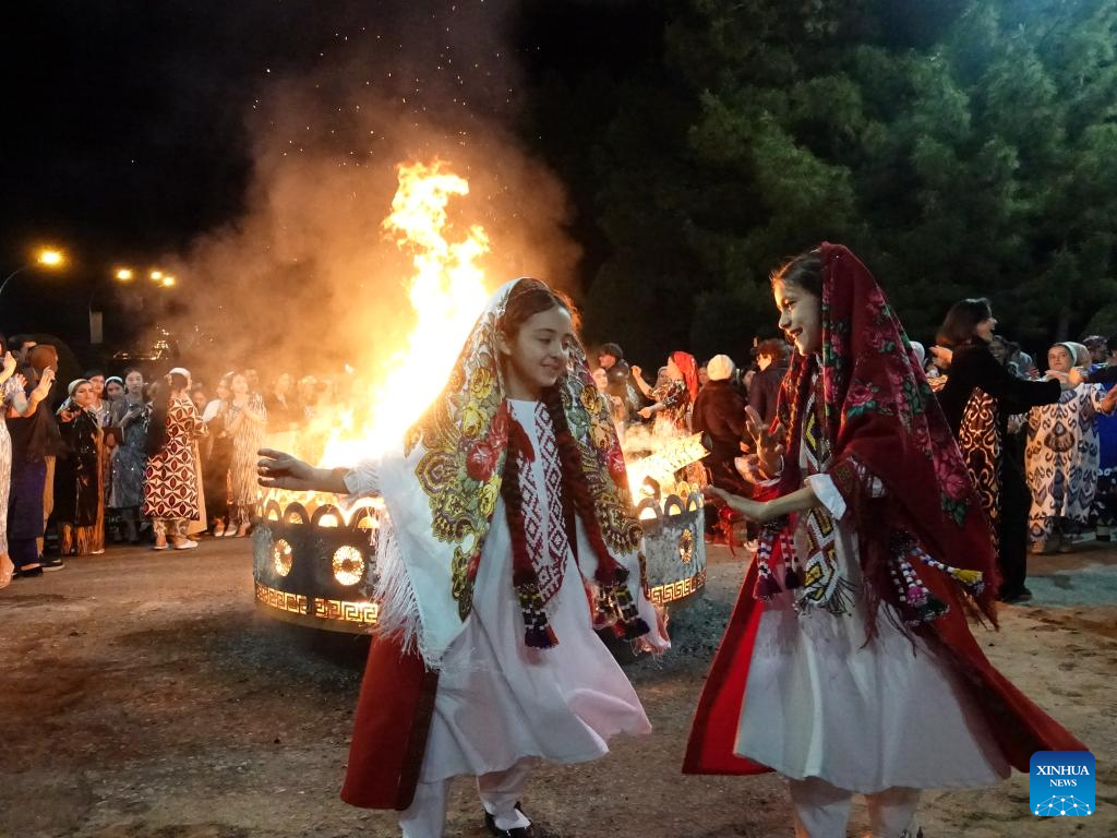 Girls dance during a bonfire party to celebrate the Nowruz Festival in Dushanbe, Tajikistan, on March 21, 2026. Nowruz is one of the most important traditional holidays in Central Asian countries, symbolizing the arrival of spring and the beginning of a new year. (Xinhua/Zhang Shuang)