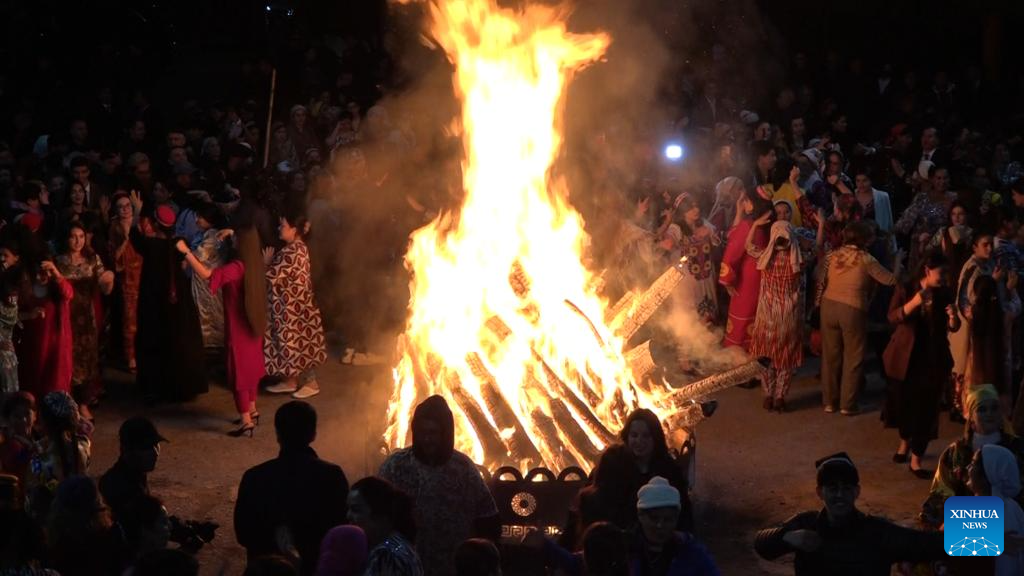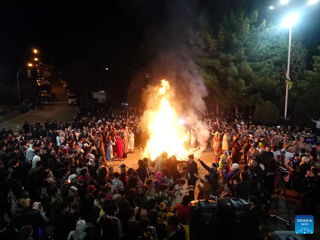 People take part in a bonfire party to celebrate the Nowruz Festival in Dushanbe, Tajikistan, on March 21, 2026. Nowruz is one of the most important traditional holidays in Central Asian countries, symbolizing the arrival of spring and the beginning of a new year. (Xinhua/Zhang Shuang)