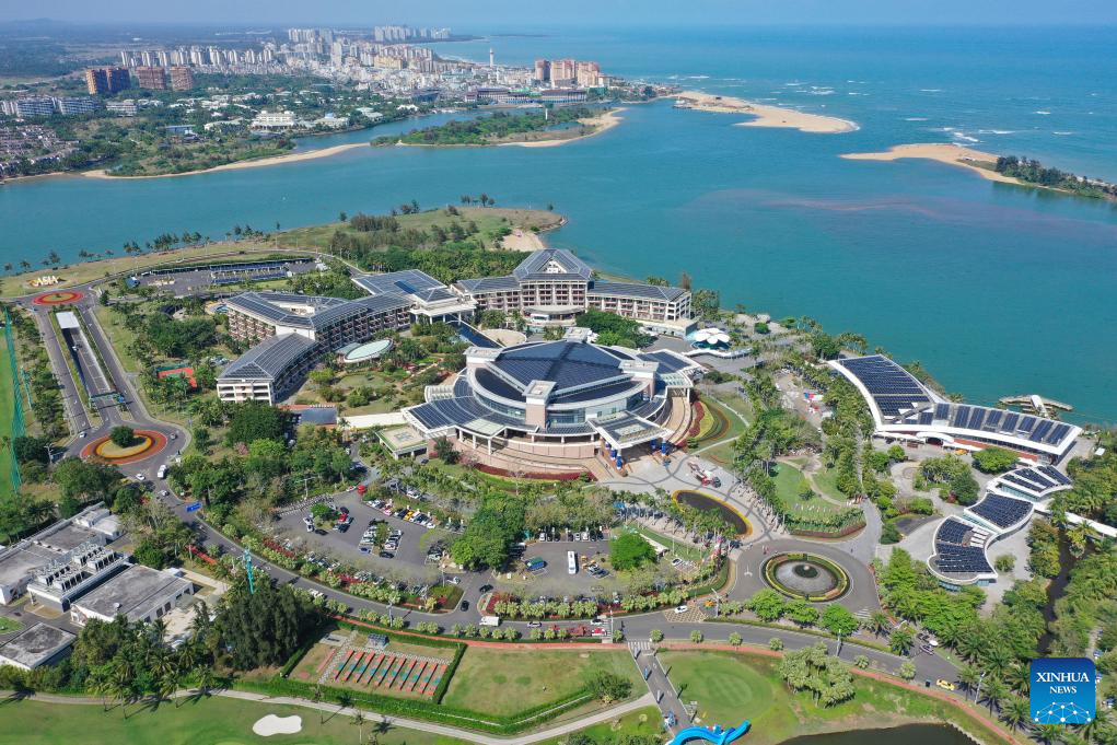 An aerial drone photo shows the Boao Forum for Asia International Conference Center in Boao Town, Qionghai City, south China's Hainan Province, March 17, 2026. The Boao Forum for Asia has been empowering the city's overall development for 25 years since its inception in 2001. (Xinhua/Guo Cheng)