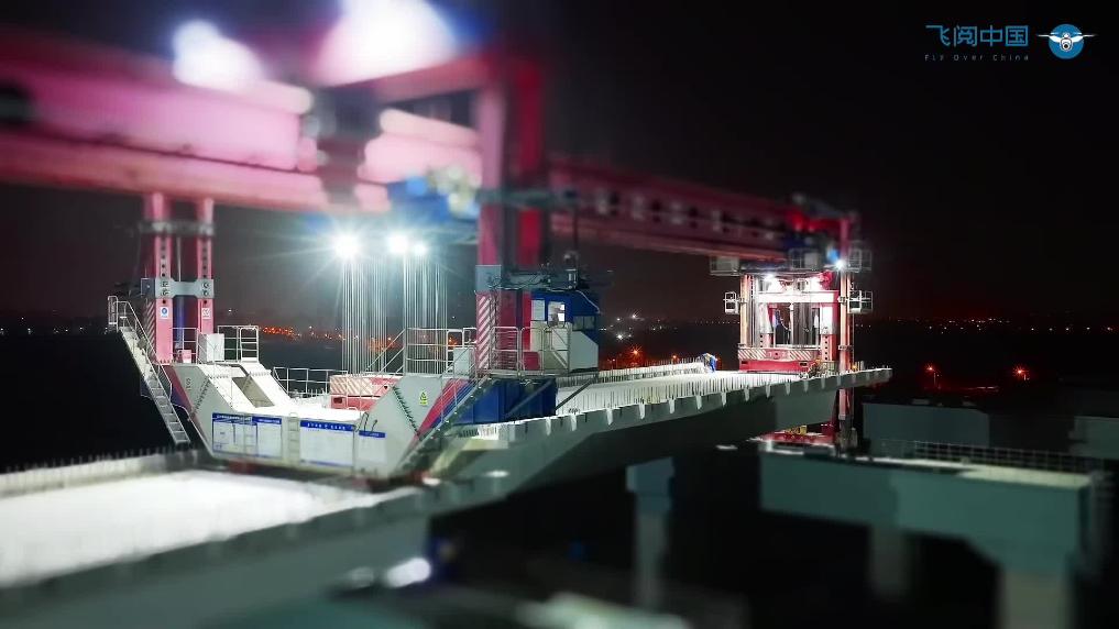 FlyOverChina | Time-lapse: busy installation site of box girders of high-speed railway in E China's Anhui