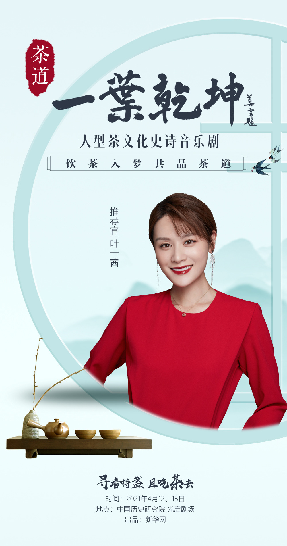一茶一世界,一葉一乾坤。由新華網(wǎng)獨(dú)家出品的大型茶文化史詩(shī)音樂(lè)劇《茶道:一葉乾坤》將于2021年4月12日-13日在中國(guó)歷史研究院光啟劇場(chǎng)隆重上演。《茶道:一葉乾坤》推薦官葉一茜向您發(fā)出邀請(qǐng),邀您共賞葉中乾坤,以茶會(huì)友,共品茶道。