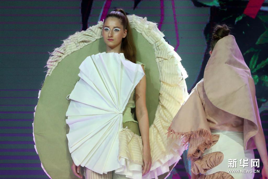 6月9日,在白俄羅斯明斯克,模特在時裝設(shè)計(jì)與攝影大賽上展示參賽作品。新華社發(fā)(任科夫攝)
