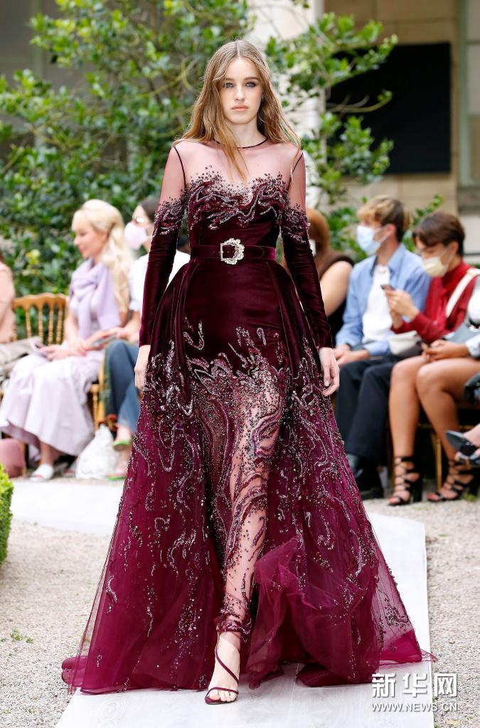 7月7日,模特在法國(guó)巴黎高級(jí)定制時(shí)裝周上展示Zuhair Murad品牌2021/2022秋冬新品。