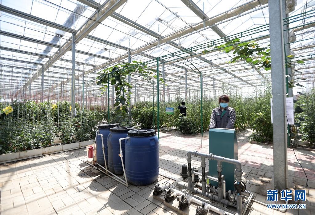 河北省饒陽縣一家現(xiàn)代農(nóng)業(yè)示范園區(qū)工人在智慧溫室操作水肥一體化設(shè)施(2020年4月8日攝)。近年來,河北省饒陽縣在推進農(nóng)業(yè)供給側(cè)結(jié)構(gòu)性改革中,積極優(yōu)化農(nóng)業(yè)產(chǎn)業(yè)結(jié)構(gòu),依托現(xiàn)代農(nóng)業(yè)示范園區(qū)建設(shè),將自動滴灌、遠(yuǎn)程數(shù)據(jù)采集、智能電力溫控等先進“工業(yè)化”技術(shù)應(yīng)用于農(nóng)業(yè)生產(chǎn)。