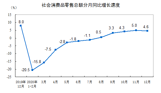 12月份,社會(huì)消費(fèi)品零售總額40566億元,同比增長(zhǎng)4.6%,增速比上月回落0.4個(gè)百分點(diǎn)。其中,除汽車(chē)以外的消費(fèi)品零售額35695億元,增長(zhǎng)4.4%。