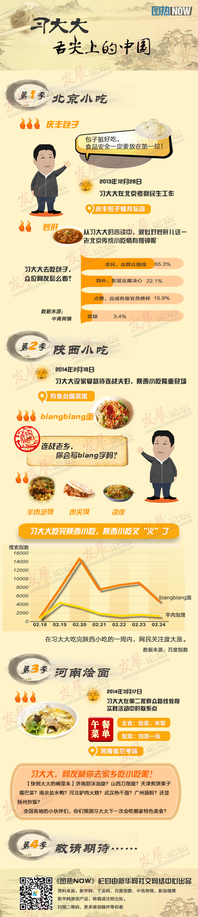 從慶豐包子到河南燴面,習(xí)大大的舌尖,嘗火了一批簡單實惠又不乏文化底蘊的中華美食。究竟還有多少這樣的美食會一波波火起來?各級官員,快來學(xué)習(xí)習(xí)大大清新簡約樸實親民的“食風(fēng)”吧!