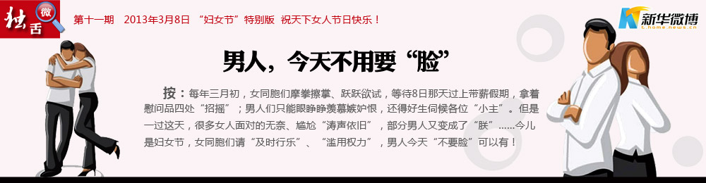 @蘄鄉(xiāng)農(nóng)夫: 在婦女節(jié)到來(lái)之時(shí),向長(zhǎng)期戰(zhàn)斗在試衣間,看韓劇,不做飯,魅力十足并掌握另一半錢包的杰出女性們致以節(jié)日的問(wèn)候。祝所有美女們:三圍魔鬼化,收入白領(lǐng)化,家務(wù)甩手化,快樂(lè)日?;瑦?ài)情持久化,情調(diào)小資化,購(gòu)物瘋狂化,老公奴隸化,祝三八婦女節(jié)快樂(lè)!