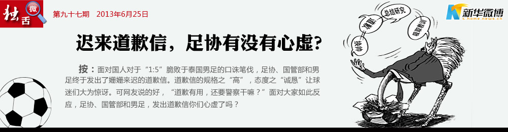 央視也不能忍了 “這樣的檢查沒有觸及靈魂,應該打回去重寫?!薄胍曉u足協(xié)道歉。足協(xié)、國管、國足上演道歉信帽子戲法,怎么看怎么像兒戲,別說觸及靈魂了,純屬耍嘴皮子。