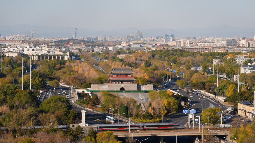 11月15日拍摄的晨光映照下的河北省承德市滦平县金山岭长城(无人机照片)。