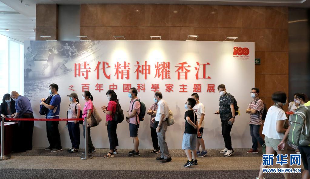 兩天休館后,“時代精神耀香江”之百年中國科學家主題展暨月壤展覽2日重新向香港公眾開放。恰逢中國共產黨成立100周年和香港回歸祖國24周年,香港會展中心比以往更加熱鬧。
